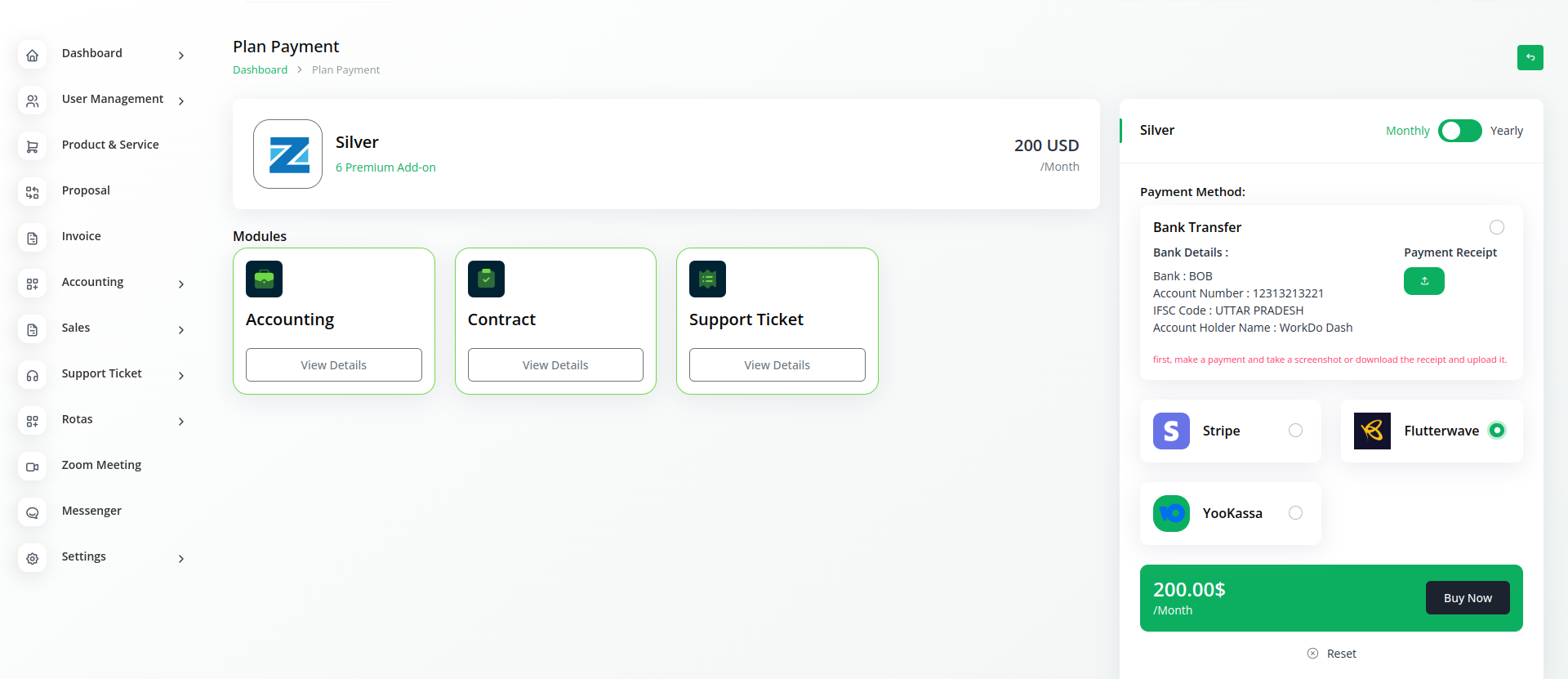Discover a world of simplicity and convenience with our seamless integration of FlutterWave, designed to enhance the plan purchase process for your company. Experience unparalleled ease as your company explores, selects, and procures plans from the plan section.