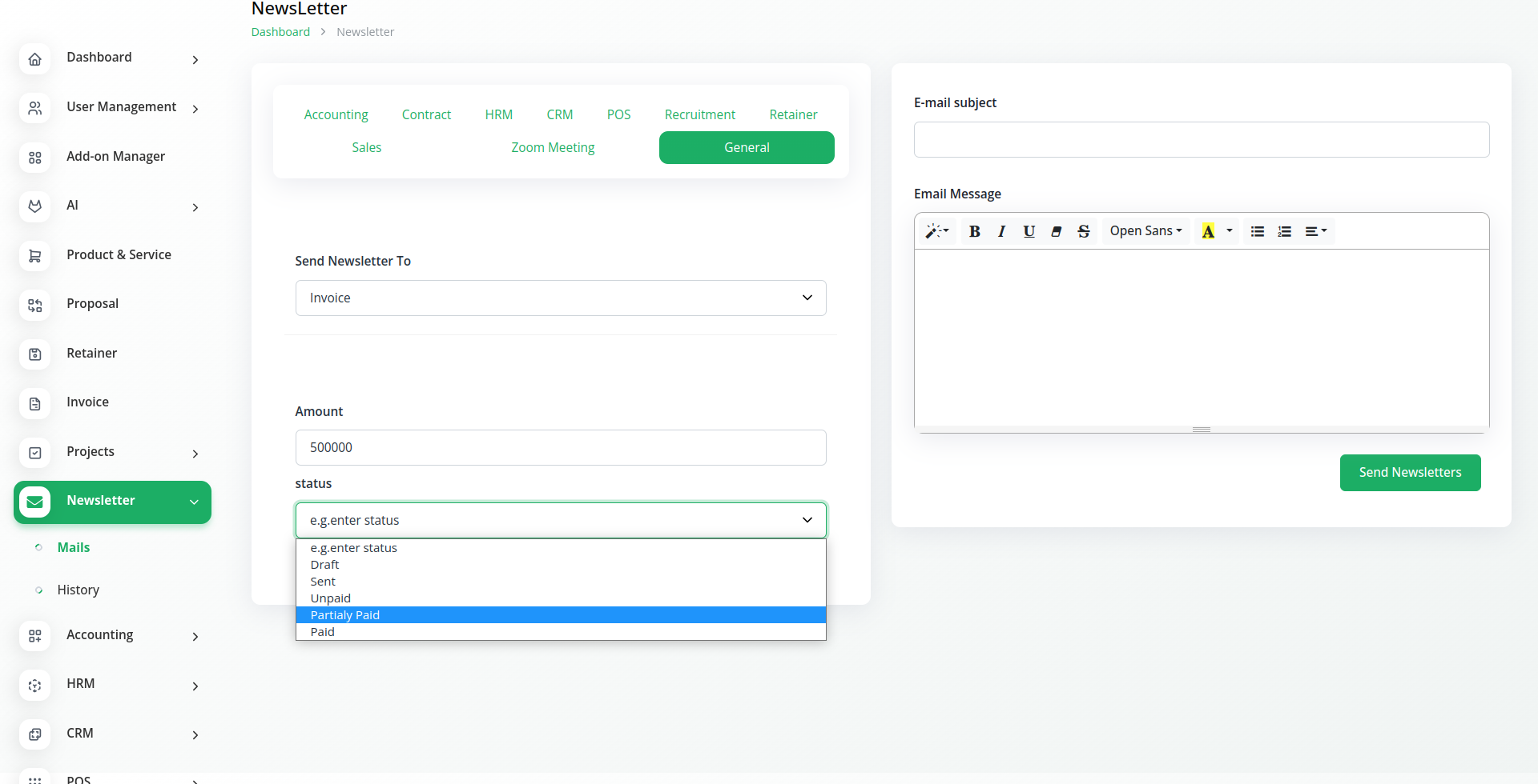 Newsletters allow you to segment your audience based on specific criteria, such as invoice status and due amounts. This segmentation ensures that you are sending relevant information to the right people, increasing the likelihood of engagement and response. Newsletter systems automate the process of sending emails to the filtered recipients, saving time and effort.