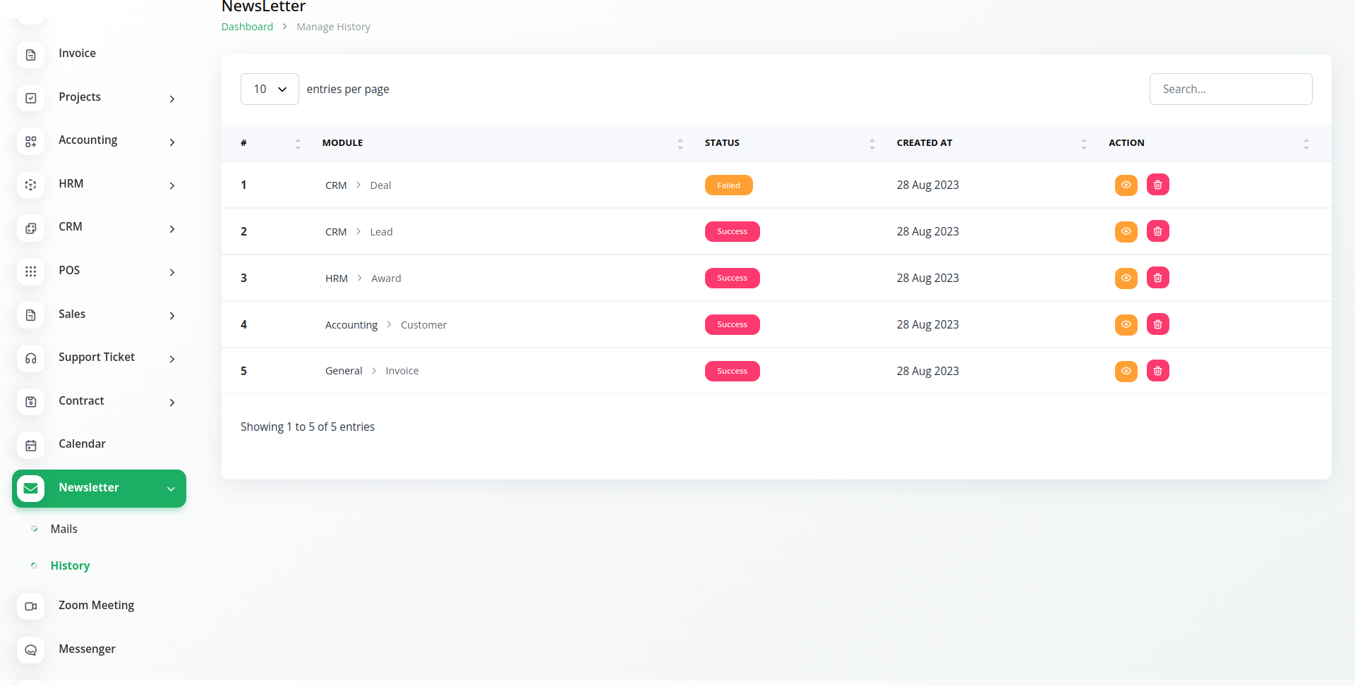 Newsletters provide a history of email statuses, allowing you to see if emails were successfully sent or if there were any issues.Using the history of the newsletter, you can also see how many people have sent the mails and to which time.