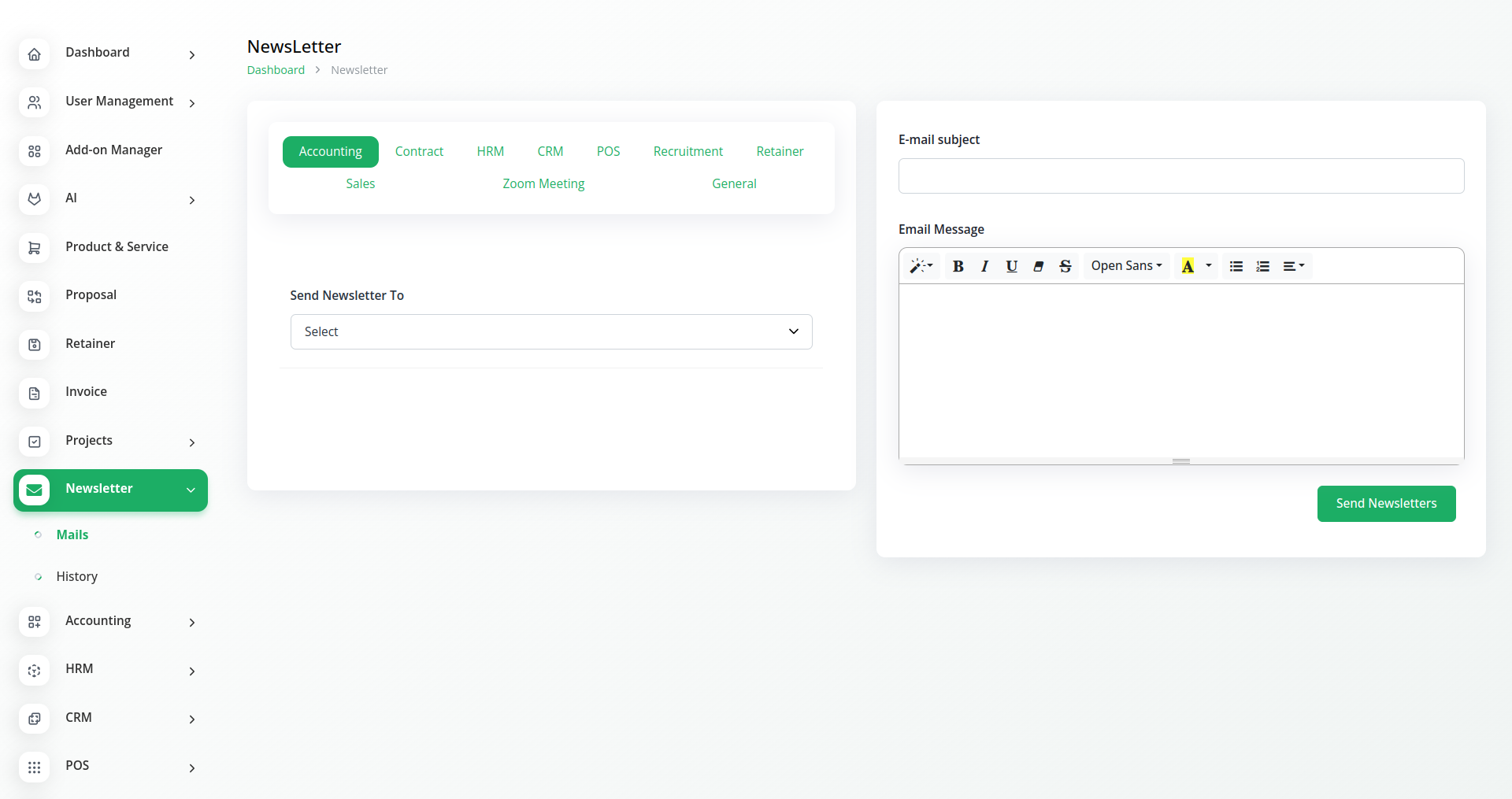 Instead of manually sending individual emails to each customer,vendor,and employee newsletters enable you to automate the process. You set up the criteria and content templates, and the system handles the distribution, saving you time and effort.