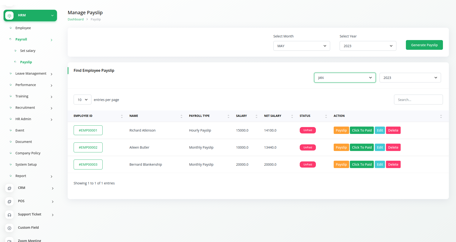 You can generate monthly payslips and make bulk payments through easy clicks. You could also change the status of the payslip with an easy CTA. An employee could view the breakdown of their salary components.