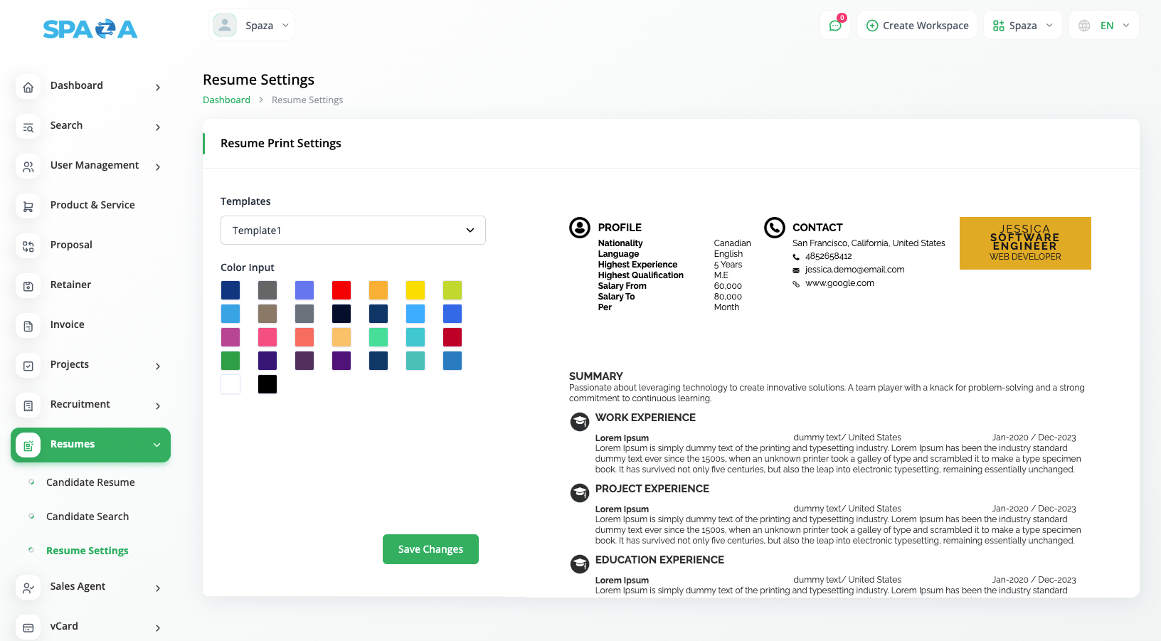 With our Resume template, customize how your resume's appear, download and send to your clients.