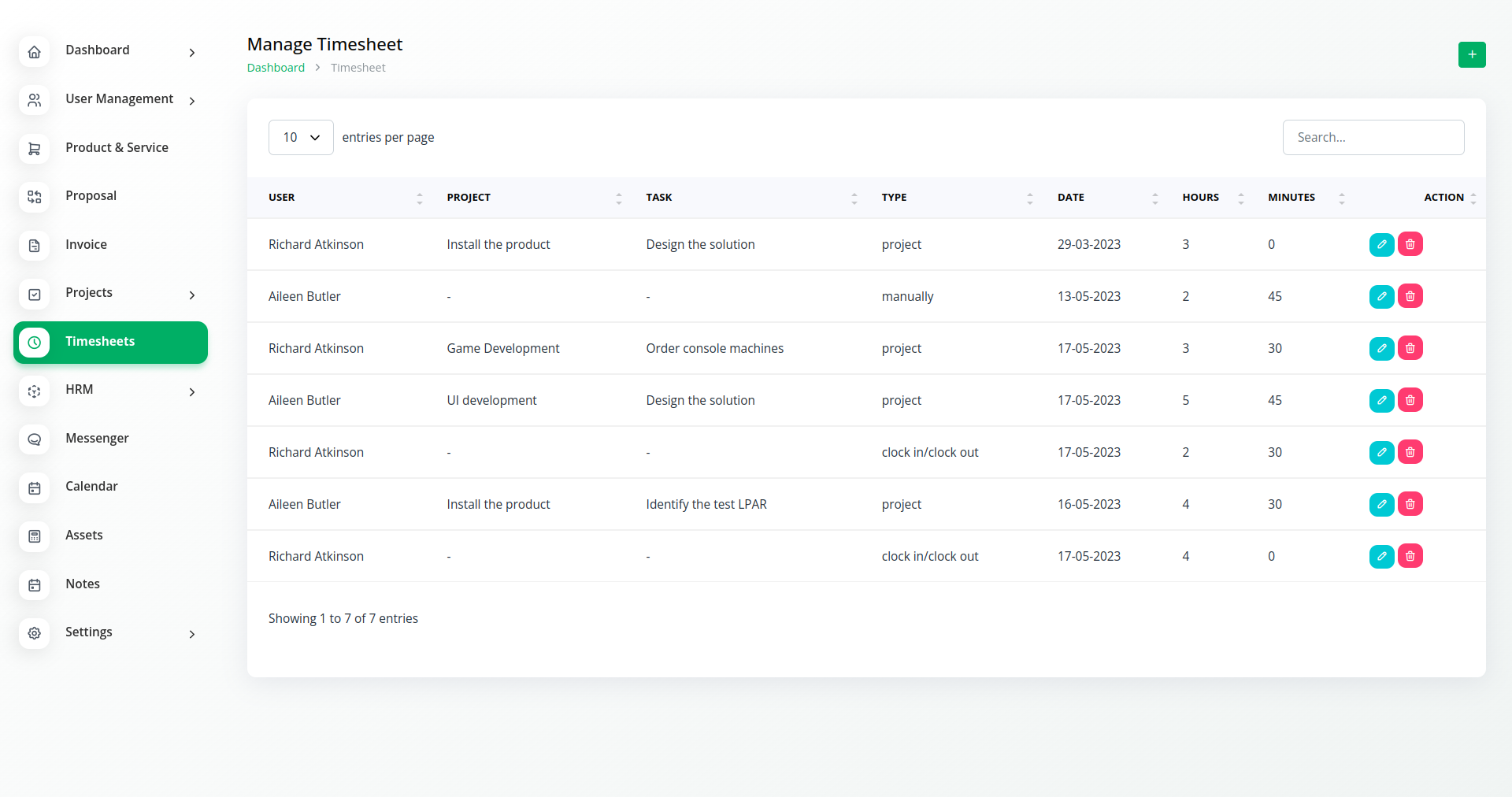 Create a timesheet by assigning Projects, Tasks, and Users. Assign a starting and ending date as well as a time. This allows you to manage your project most efficiently.
