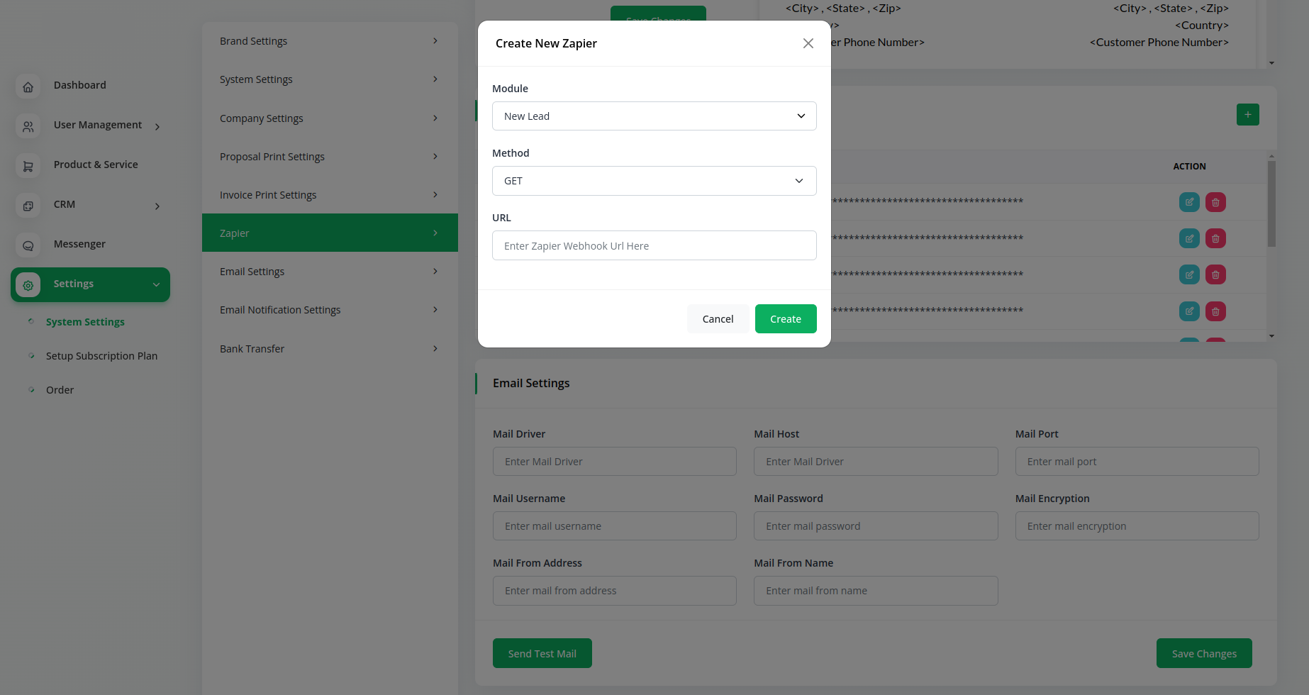 You can add a Zapier event in the settings page and you can also edit or delete functionality for Zapier. It is used for invoice, customer, retainer, proposal , user , customer and so on.